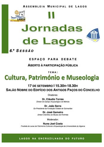 A Assembleia Municipal de Lagos vai levar a efeito no dia 17 de setembro de 2016 (Sábado), entre as 15.30 horas e as 18.30 horas, a organização de um Debate, no Salão Nobre do Edifício dos Antigos Paços do Concelho, subordinado ao tema “Cultura, Património e Museologia” integrado nas II Jornadas de Lagos.