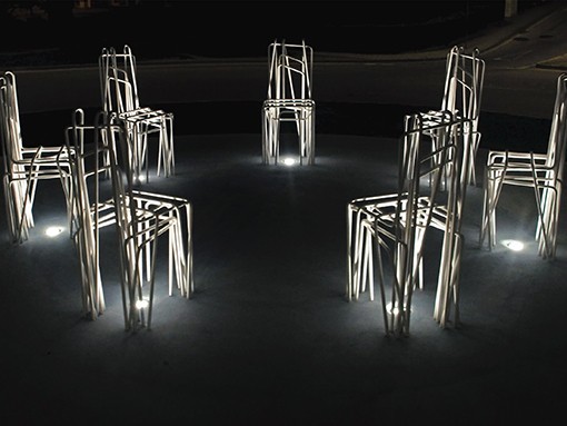 Após uma marcante presença durante vinte anos, as 7 Cadeiras caem para se reerguerem, no mesmo local, desta vez com a força acrescida que o recurso ao ferro lhes imprime e com a sugestiva complexidade dos «imensos caminhos e vazios» que marcam a contemporaneidade.