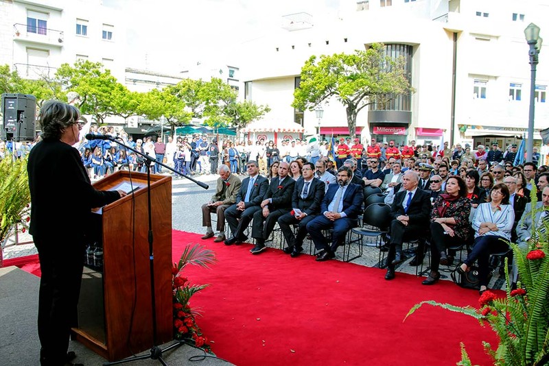 Depois de todos os representantes das forças políticas terem discursado, foi a vez da Presidente da Câmara Municipal de Lagos, Maria Joaquina Matos, tomar a palavra. A autarca começou por agradecer todas as intervenções pois “com todas aprendemos”. Mas foi na esperança da juventude que Maria Joaquina Matos focou a sua intervenção. Para a autarca “o espírito do 25 de Abril continua agora, e com mais força, com as gerações mais novas”. Porque segundo a mesma “com os jovens, Abril nunca acaba. Porque os mais jovens não permitirão, nunca, ser amordaçados ou silenciados. Com a força da juventude dos nossos dias, ninguém mais fechará as portas da liberdade”, frisou. Lembrando que “há 43 anos que celebramos (e devemos celebrar!) esta data, como o dia em que Portugal ganhou a sua liberdade”, a autarca reiterou a convicção de que “nessa altura começamos do zero. E muito já construímos e conquistamos…mas muito temos ainda para conquistar!” A Presidente aproveitou a ocasião também para reforçar a importância do poder local “decisivo na promoção do desenvolvimento do país”. Partilhando que “as comemorações do poder local, em Lagos, foram, para mim, uma das cerimónias mais marcantes da vitalidade do poder local democrático. Porque os testemunhos e as intervenções não se resumiram apenas e somente à saudade de um tempo vivido, mas cheios de vontade, entusiasmo e esperança num futuro promissor assente em fortes alicerces de liberdade. Nessa cerimónia alguém disse, registei, e não mais me irei esquecer - Celebrar um aniversário é uma prova de vida. É o que estamos hoje aqui a fazer. A celebrar a vida e a liberdade que conquistámos. Também alguém disse que o poder local não foi só uma chegada, foi antes a meta de partida para uma nova caminhada. Caminhada essa que ainda hoje continuamos a trilhar…”. Maria Joaquina Matos defendeu que “um sistema cada vez mais descentralizado contribuirá, de forma determinante, para a afirmação da justiça e eficácia de todos os propósitos traçados para o país, em geral, e para as regiões/ localidades, em particular”. A autarca não tem dúvidas de que a descentralização do poder central nas autarquias do país, com a transferência de mais competências (um dos assuntos que está agora na ordem do dia e processo que está em desenvolvimento) “é o reconhecimento do bom desempenho das autarquias locais” e vem potenciar a promoção de um desenvolvimento mais equitativo dos sítios e das suas gentes, a valorização e salvaguarda das identidades locais, dos patrimónios genuínos e únicos de cada espaço, em suma a valorização das culturas regionais”.