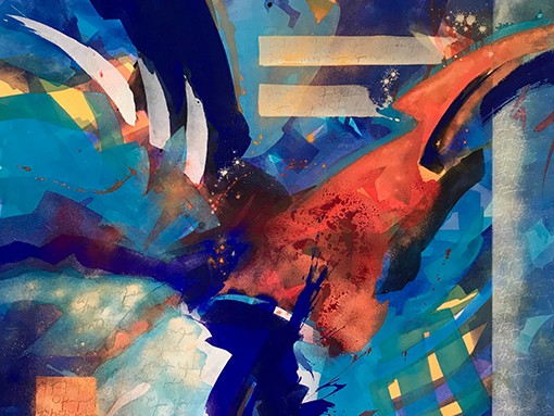 Nascida em Colónia, na Alemanha, mas uma apaixonada pelo Algarve, Kerstin Wagner inspirou-se na beleza natural e no azul da região para a criação das suas obras. “Spaces in between” tem inspiração nas tonalidades e vibrações cromáticas do mar e da luz algarvios, usando três princípios opostos: movimento vs. calma, caos vs. harmonia, escuridão vs. luz. Através da cor, da técnica, tintas acrílicas e pigmentos, as pinturas fazem ressaltar a forte intensidade e a dinâmica visual, mas igualmente a vastidão, a profundidade e a harmonia dos ambientes marítimos.