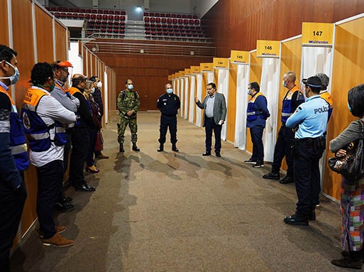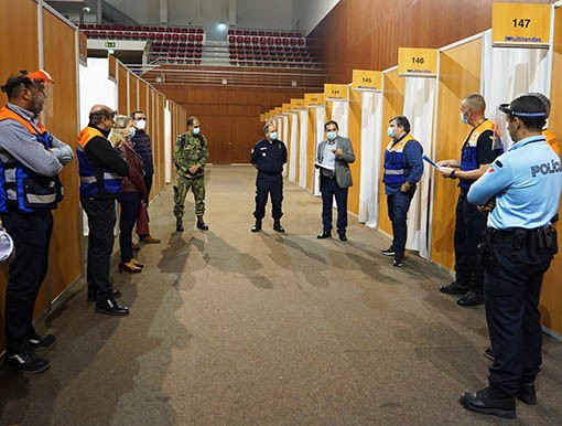 Hugo Pereira guiou a visita à ZAP do Pavilhão Municipal de Lagos, a qual tem uma capacidade para 250 camas, das quais 150 em quarto individual. No total, a cidade está dotada de aproximadamente 600 camas para alojamento dos profissionais de saúde, das forças e serviços de segurança e de socorro, cuja mobilização para o serviço de prontidão obste a que possam regressar às suas casas, sendo ainda destinadas à população em geral no que respeita ao isolamento preventivo (casos suspeitos de COVID-19) e ao isolamento efetivo. Também nas áreas rurais do concelho foram criados espaços com camas para atender aos casos que possam surgir: em Bensafrim estão disponíveis 12 camas; em Barão de São João 16 camas; em Espiche, no Parque de Campismo Turiscampo, estão disponíveis 130 casas (bungalows); e em Odiáxere (no Clube Desportivo e na Sede do Rancho Folclórico) foram criadas zonas com 40 camas.